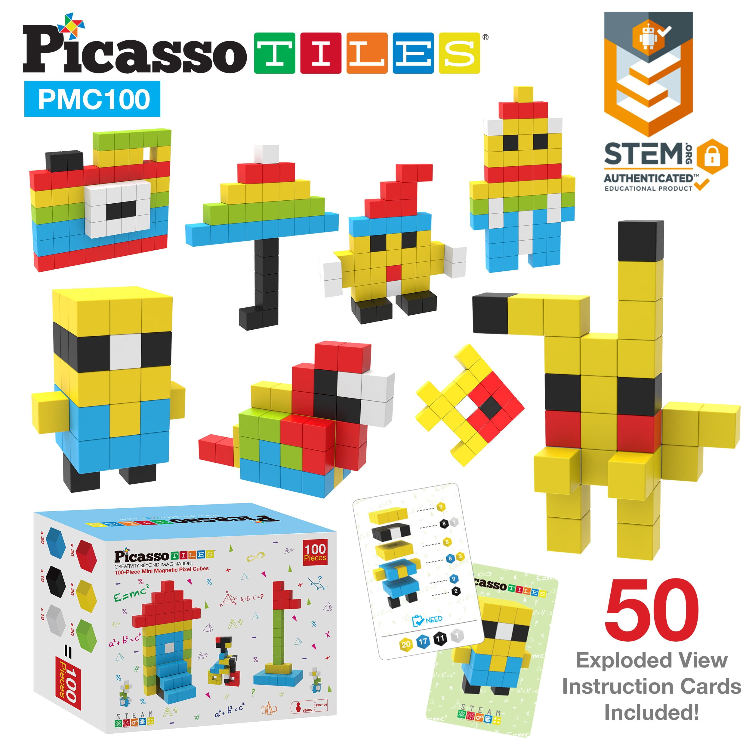 Picassotiles 100pcs Pixel Mini Stem Magnetic Cube Puzzle Sensory Toy Mix Match Kit Pmc100 Ages 14 Walmart Com